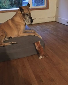 Cash in his retirement :-) Cash and his new best buddy Hawk (Am Can Ch Striders Night Hawk)