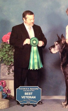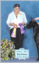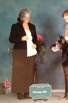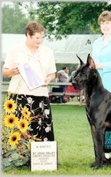 2012 - Completed US Grand Championship at Lake ELmo MB August 2011 - Hawk picked up two 5 point selects both at Specialties towards his Grand Championship title! He finished the weekend with 19 points getting select 4 of the 5 days. August 2008 - Best of Opposite Sex, 2008 GDCC National Specialty Show November 2006 - Finished his American Championship owner handled by Denise. September 2006 - WD, BW Des Moines Great Dane specialty for a 5 pt major owner handled August 2006: - Finished his Canadian championship with a Group 3 and Group 4 wins. - WD for a 4 pt Major at the Heart of Minnesota Great Dane Specialty May 2006: - Best of Winners 3 out of 4 days at the NOWDA Working Dog Specialty show in Thunder Bay. October 2005: - Reserve Winners Male his first time in the ring at 6 months old. |