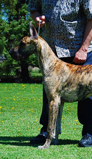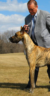 AM CH DIVINE ACRES ANUBIS x BISS AM CH BISS BPIS CAN CH STRIDERS SILKEN FANTASY Brindle Female Pure Color Bred Breeders: Glen & Kelly Tait Owner: Justin Hayes