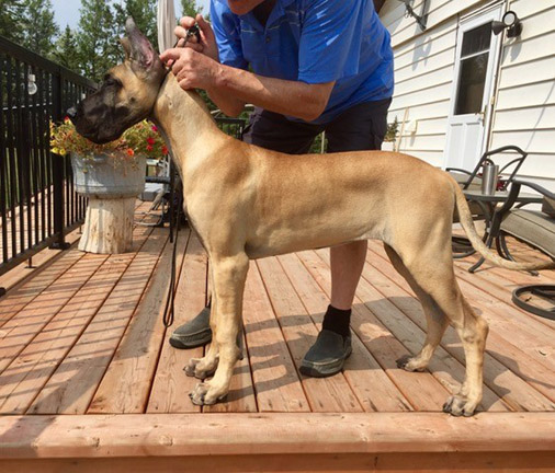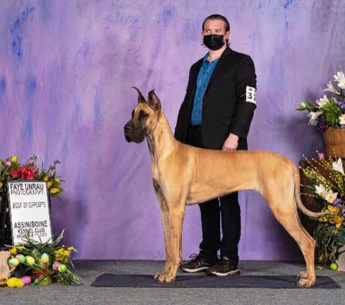 MRBIS MBISS AM G.CH BIS CAN CH BIS UKC CH BIS Intl.CH HAUER N ROCKINGDANE'S KNIGHT IN SHINING ARMOUR CGC AOM x AM CH LONGO N VANDELFT'S GODDESS OF DEATH Breeders: Danny & Jackie Van Delft & Tootie Longo Owners: Jordan & Christina Tait CHIC 188989