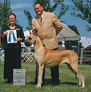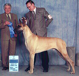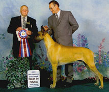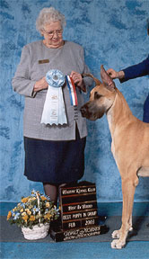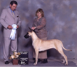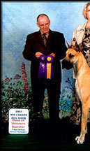 Tasi (BISS Am BPIS Can Ch Striders Silken Fantasy) was awarded the Great Dane Club of Canada's Blue Ribbon Puppy of the Year award for 2002! W