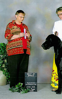 2007: Fargo Moorhead All Breed show: Raven won her AOC class 2 days as well as Reserve Winners to the major on the first day. June 2006: Raven finished her Canadian championship (above) easily in just 4 shows, recently taking BOW and BW each day in a three day show, owner handled. Congrats to Raven and proud Mom n Dad! March 2006: Raven is just starting her show career and recently took a Best of Breed win over a special owner handled. Congrats! |