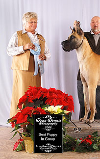 - Best Puppy in Specialty, Association of Great Dane Fanciers, Sept 2008,
