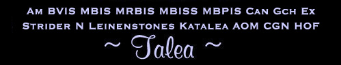 Breeders: Glen & Kelly Tait, Owners: Renee Russo, Lori A Spicer, Glen & Kelly Tait OOFA CA2097 Heart Normal Cardiologist OFA 11135 Hips Good OFA EL1579 Elbows Normal Thyroid Normal, Eyes Cerf Pure Color Bred |