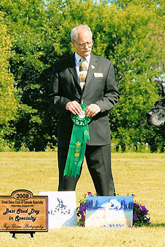 Below is Jordan handling Mac to Best Stud Dog in Specialty at the GDCC National Specialty in 2008