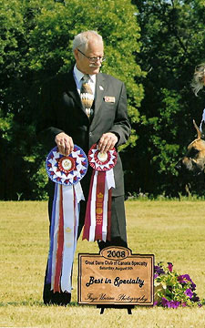 - Best in Specialty Show win at 19 months, Great Dane Club of Canada National Specialty - Best Veteran Bitch and Best Brood Bitch, 2014 Great Dane Club of Canada National Specialty |