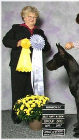 - BOB at the GDCC Eastern Divisional booster as well as a Group 2nd and RBPIS September 2007 - Marley has just started her show career but at 7 months old, has already won 5 Best Puppy in Groups, 2 Group 3rds, and a Best Puppy in Show |