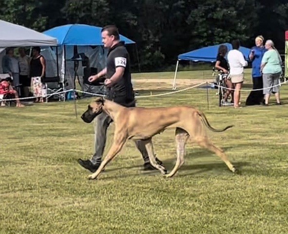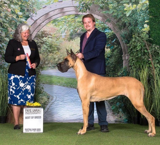 MRBIS MBISS AM G.CH BIS CAN CH BIS UKC CH BIS Intl.CH HAUER N ROCKINGDANE'S KNIGHT IN SHINING ARMOUR CGC AOM x AM CH LONGO N VANDELFT'S GODDESS OF DEATH Breeders: Danny & Jackie Van Delft & Tootie Longo Owners: Jordan & Christina Tait CHIC 188989