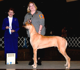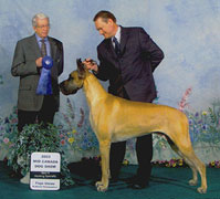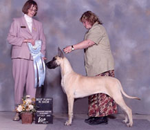 Tasi (BISS Am BPIS Can Ch Striders Silken Fantasy) was awarded the Great Dane Club of Canada's Blue Ribbon Puppy of the Year award for 2002! W