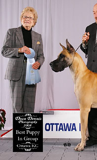 - Best Puppy in Specialty, Association of Great Dane Fanciers, Sept 2008,