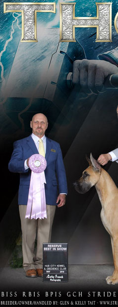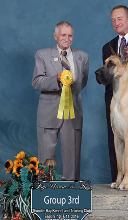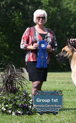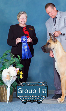 | Show highlights: - #2 Dane in Canada, #1 Owner Handled in 2016 with limited showing - Multi Best in Specialty Show winner - Reserve Best in Show - Multi Best Puppy in Show - Canadian Champion at 10 months |